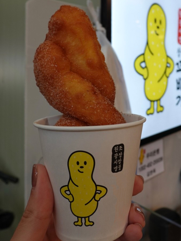 続いては、広蔵市場で食べたクァベギ。ねじりの形をした揚げドーナツです。