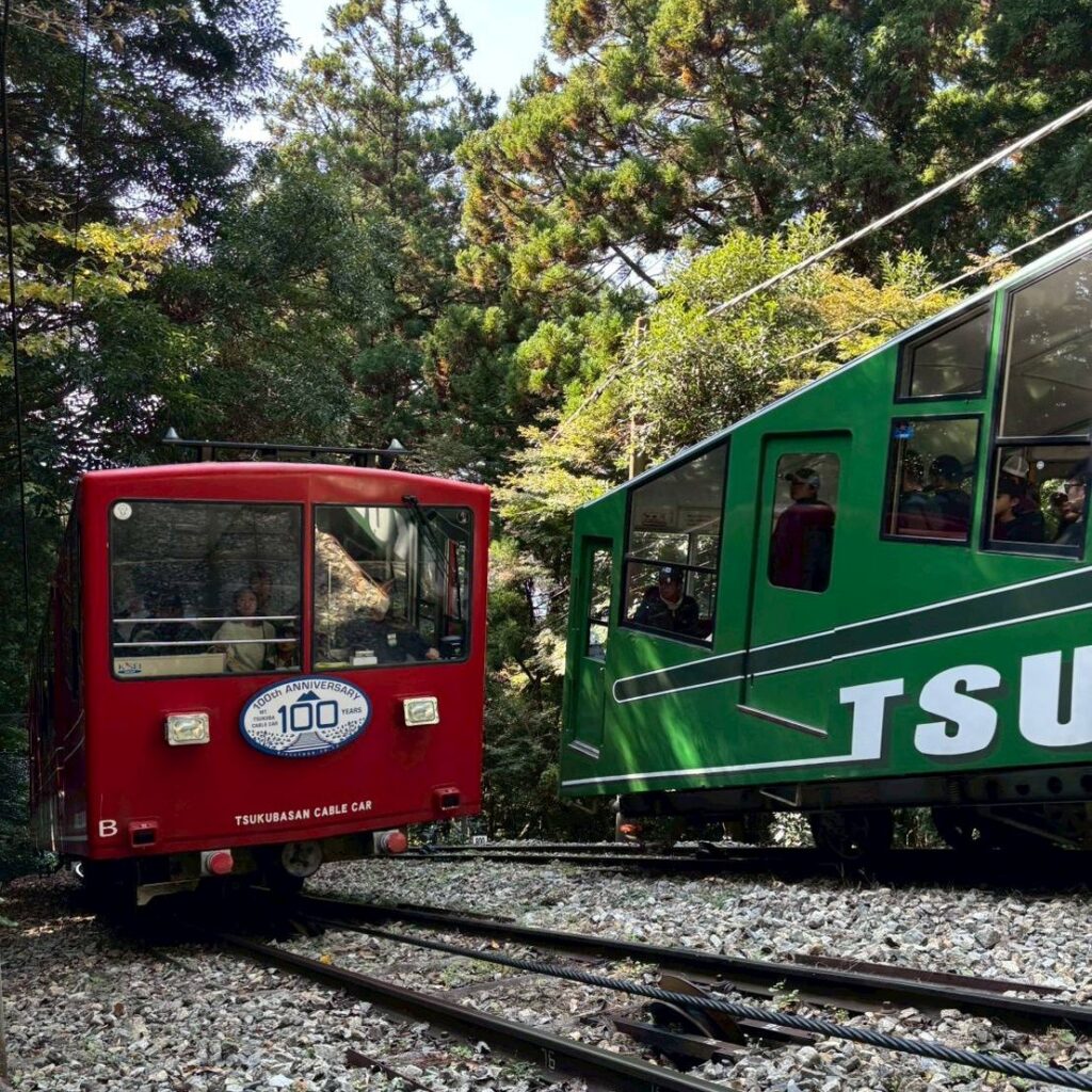 御幸ヶ原コースはほぼケーブルカーに沿ったコースとなっていて、途中でケーブルカーのすれ違いポイントを見ることもできますよ。