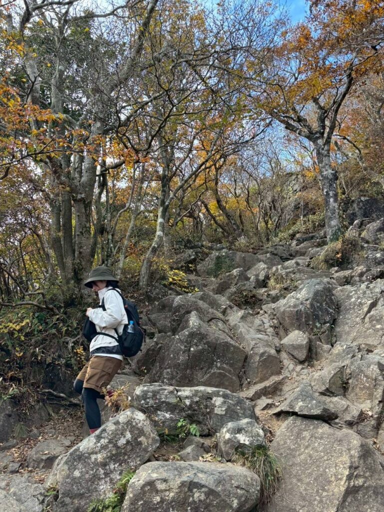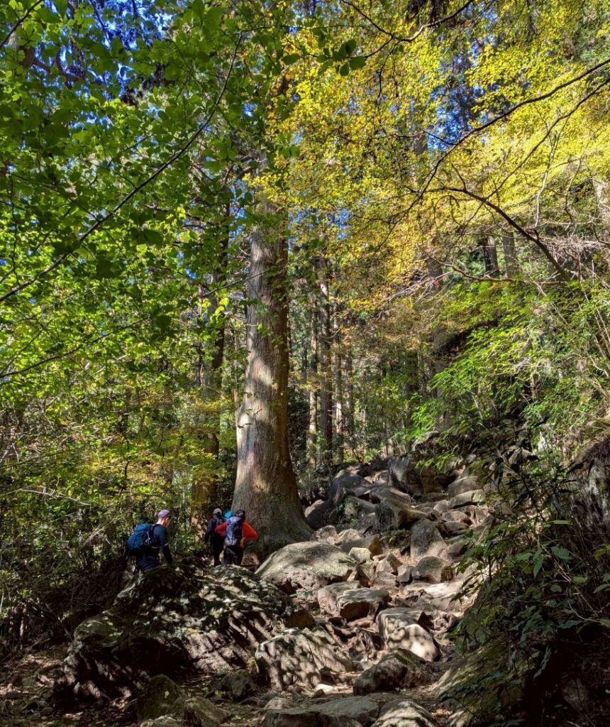 勝手に「難易度低い山」を想像してましたが、最初から岩ゴロゴロ、木の根うねうねであっという間に息が上がる名ばかりの登山部。