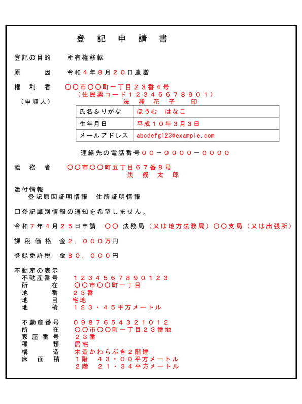 前述のように、「相続人への遺贈登記」は、亡くなった方(被相続人)が、遺言書で法定相続人に対して不動産を「遺贈する」と指定した場合に、当該不動産の所有権を被相続人から「遺言で指定された法定相続人」へ移転させる登記手続きです。
